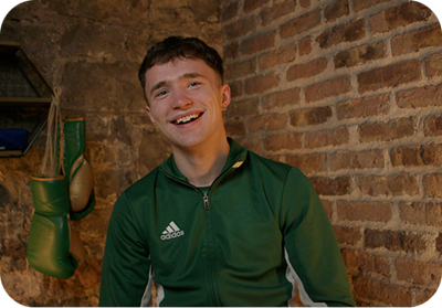 - Pictured: North West Credit Union CEO, Orla Lee and Brand Ambassador, Sports Bursary recipient for 2023 / 2024, Olympic boxer, Dean Clancy.